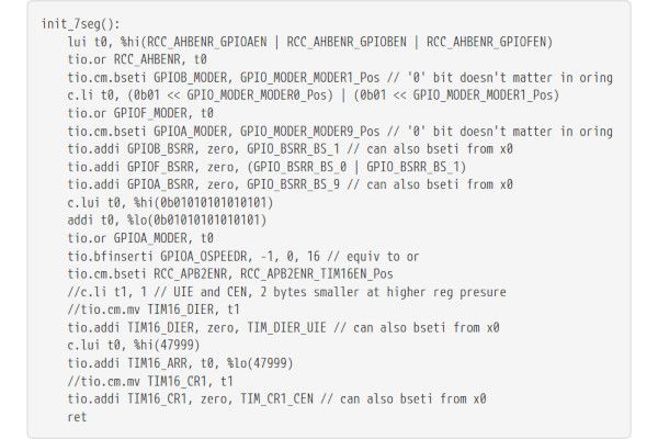 "I have made a new custom extension providing AVR8/PRU like IO instructions," Jan explains of his project. "It is designed for accessing peripheral registers in microcontrollers. The scope of the XTightlyCoupledIO extension is to reduce code size, register pressure and increase performance in peripheral accessing code. All of which results in reduced latency in control loops, etc."