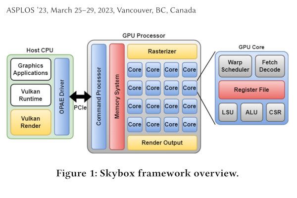 "Skybox, a full-stack open-source GPU architecture with integrated software, compiler, hardware, and simulation environment, that enables end-to-end GPU research," its creators claim in the abstract to their paper. "Using Skybox, we explore the design space of software versus hardware graphics rendering and propose and hybrid micro-architecture that accelerates the state-of-the art Vulkan graphics API.