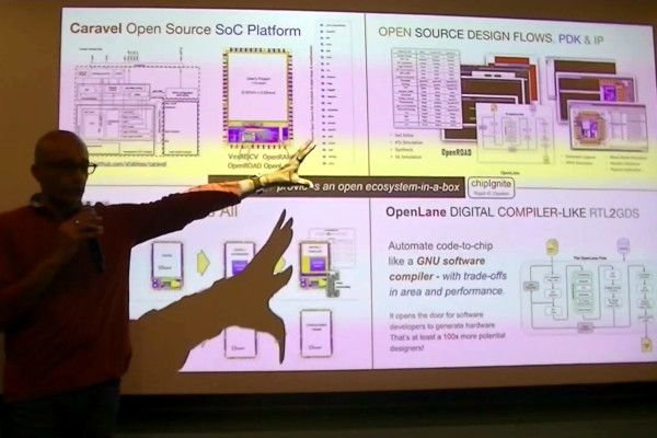 For those who couldn't attend, selected videos are available on the FOSSi Foundation YouTube channel now. These include: FOSSi Foundation director Olof Kindgren discussing the CoreScore benchmark, which aims to see just how many award-winning bit-serial SERV cores you can cram onto a single FPGA; KenoFischer on using CedarEDA in your open source silicon projects; Jean-Pierre Thubault on the ChipWhisperer FPGA-based research tool; and two presentations from Frans Skarman, one on the Spade hardware design language and the other on the extensible Surfer waveform viewer.