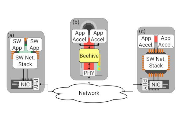 “Direct-attached accelerators, where application accelerators are directly connected to the data centre network via a hardware network stack, offer substantial benefits in terms of reduced latency, CPU overhead, and energy use,” Katie and colleagues from the University of Washington and Microsoft Research explain in an abstract to their paper introducing Beehive. "However, a key challenge is that modern data centre network stacks are complex, with interleaved protocol layers, network management functions, and virtualisation support. To operators, network feature agility, diagnostics, and manageability are often considered just as important as raw performance. By contrast, existing hardware network stacks only support basic protocols and are often difficult to extend since they use fixed processing pipelines.