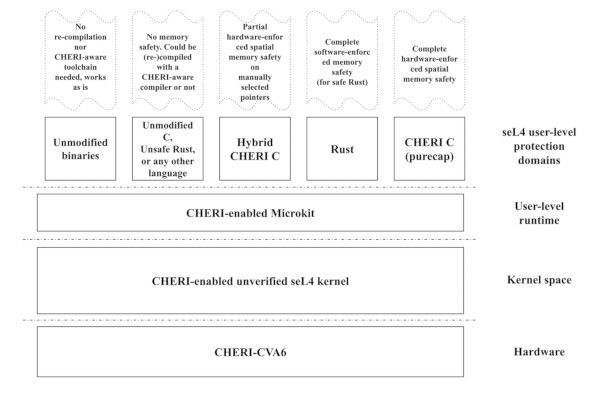 “This initial release provides: a prototype implementation of the CHERI-seL4 RFC discussed with the seL4 community; support for the draft CHERI-RISC-V (Zcheri) architecture; compatibility with Codasip’s x730 processor, CHERI-Toooba, and CHERI-CVA6; a minimal kernel extension that supports memory-safe CHERI C in userspace while keeping the kernel unchanged when CHERI is disabled; CHERI-Microkit, a lightweight framework for running CHERI-enabled and unmodified C/C++ or Rust programs side by side; a set of exercises and tutorials to get developers started with CHERI on seL4.”