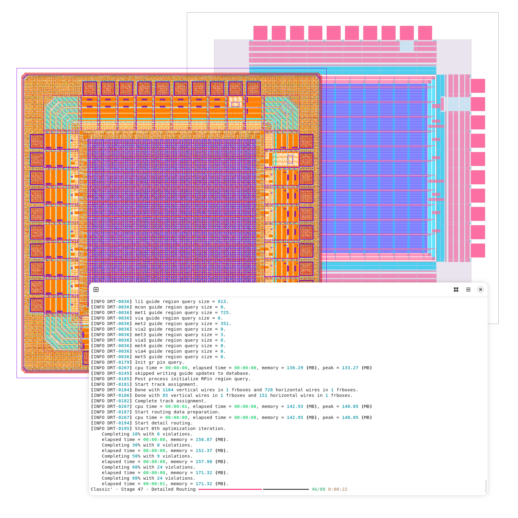 And of course there many other many small improvements, such as improved rendering of the chip layout, reduced file size for both Magic and KLayout GDS files, better subprocess formatting, and many more improvements and bug fixes, including new features and improvements from updating OpenROAD such as support for non-default rules and much-improved antenna violation fixing.
